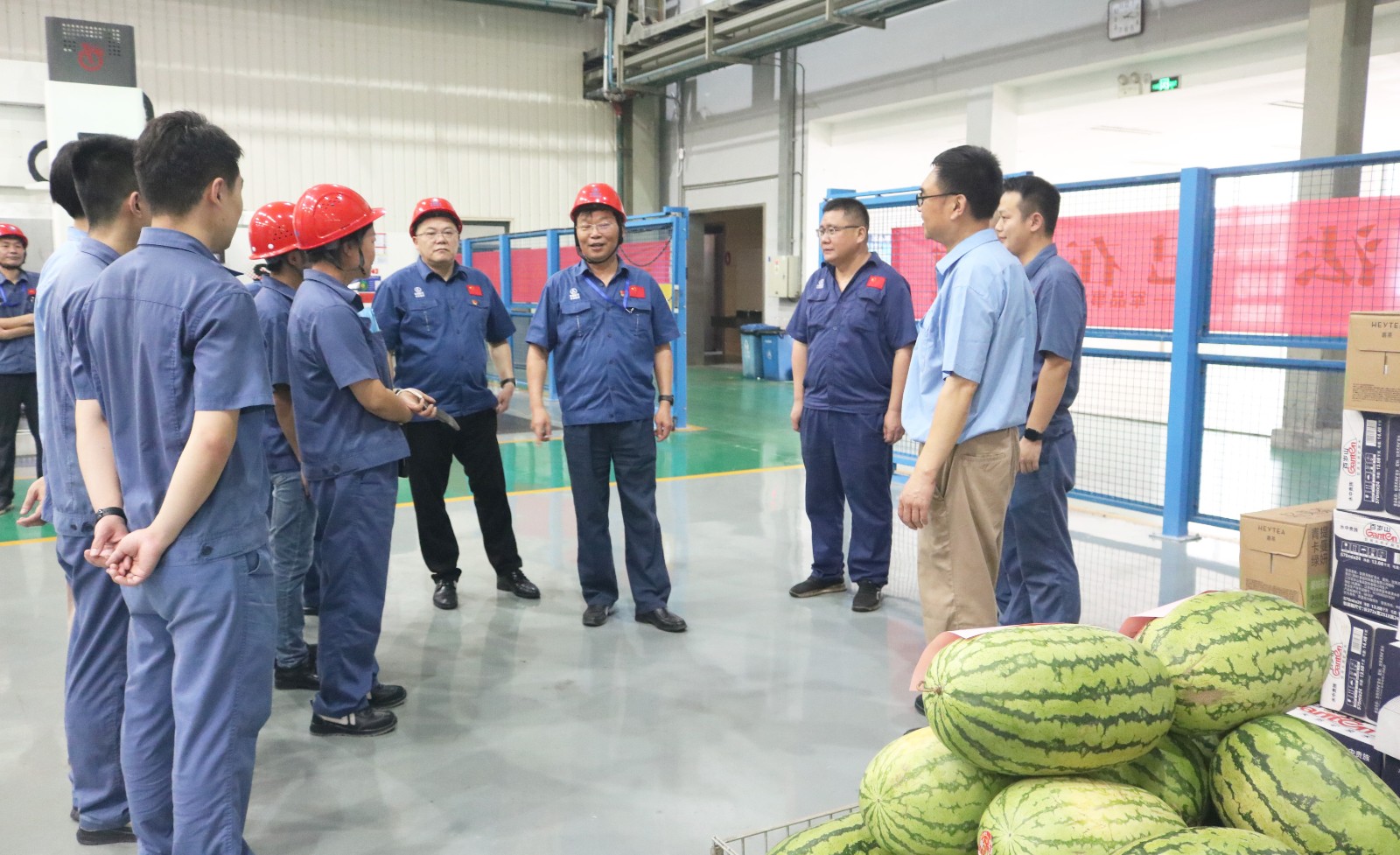 7月16日下午,bwin必赢集团党委书记、董事长林小传,党委副书记、总经理郭涛,党委副书记、工会主席罗松等来到各事业部生产现场,看望慰问一线职工,检查防暑降温工作,要求公司两级党组织和党员干部坚持以人民为中心的发展思想,切实抓好夏季安全生产工作,维护好职工身体健康和企业安全和谐发展。